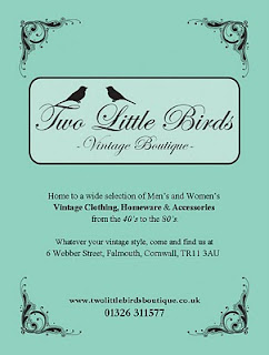So pleased to be welcoming Emma from Two Little Birds Boutique, in Falmouth along to the Fair. She'll be bringing with her a wonderful selection of vintage clothing and homewares from the shop as well as her own gorgeous handmade pin up petals from Miss Curly Purl.
